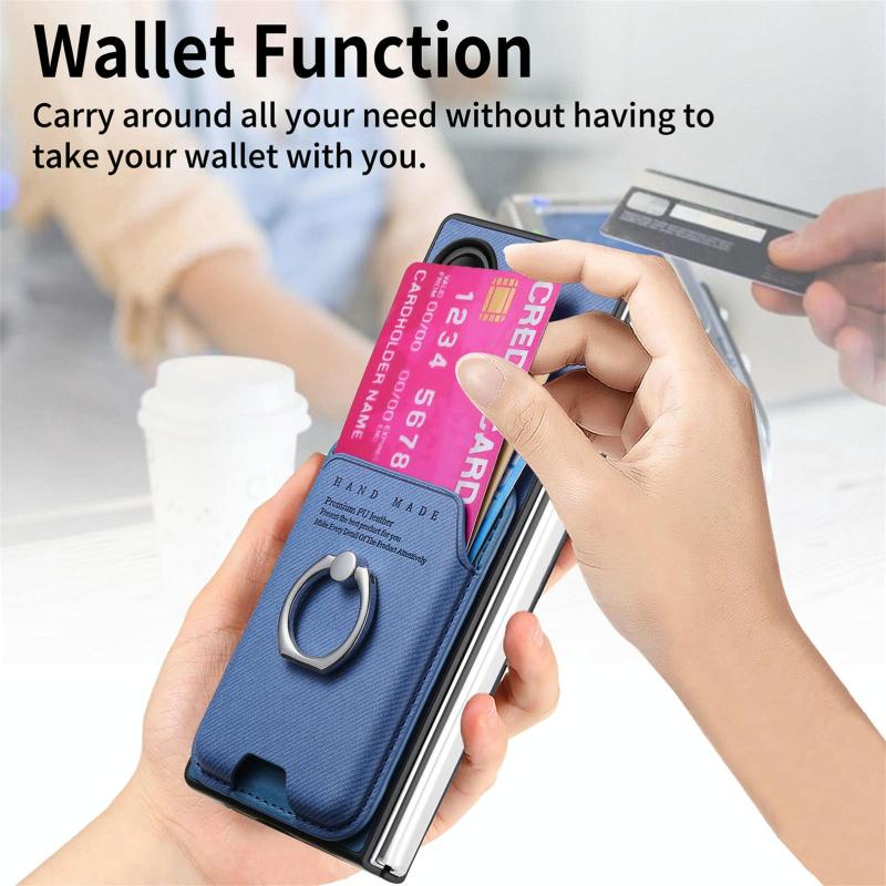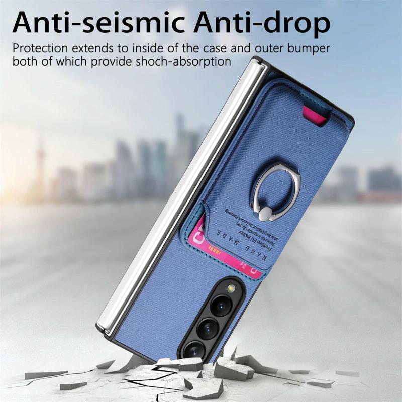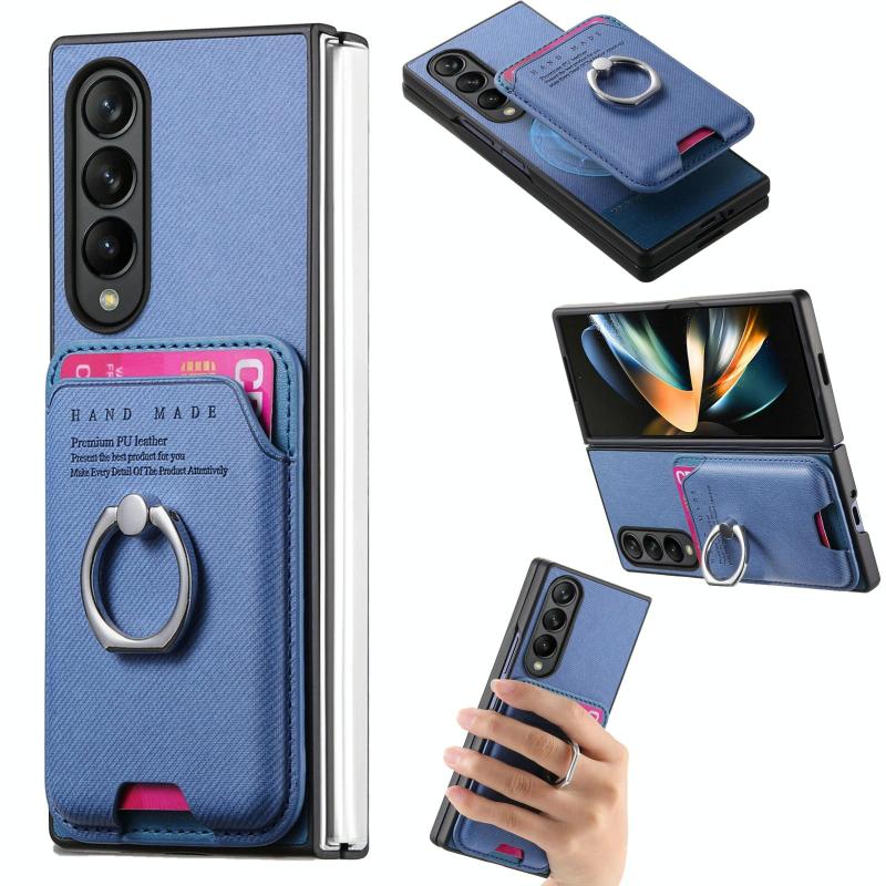 Θήκη Samsung Galaxy Z Fold4 5G με υφασμάτινη τσέπη & μαγνητικό κράτημα (Μπλε)