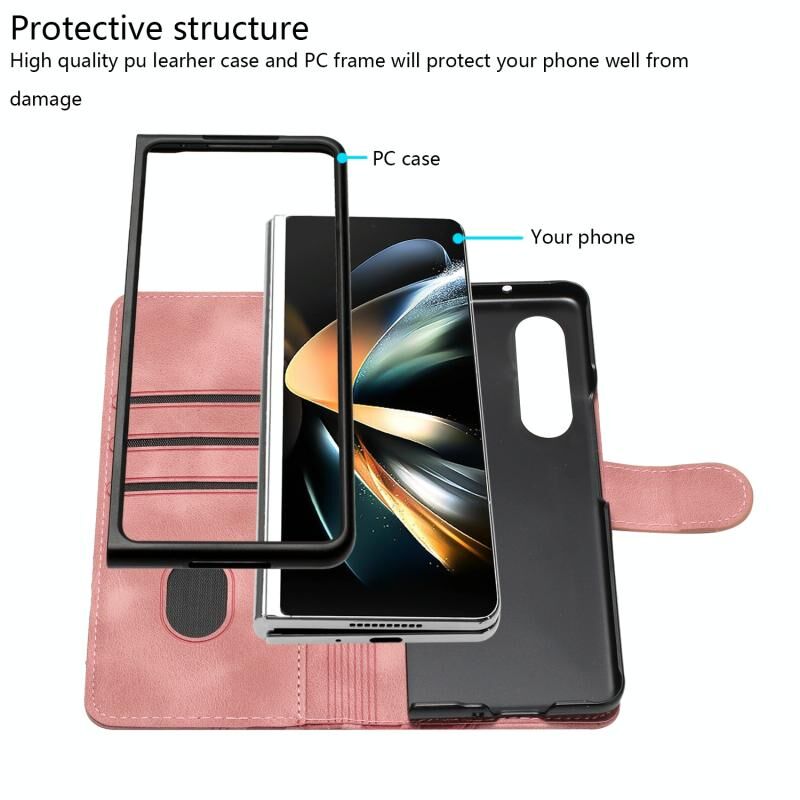 Για το Samsung Galaxy Z Fold4 5G YX0060 Elephant Head ανάγλυφο κεφάλι τηλέφωνο δερμάτινη θήκη με κορδόνι (ροζ)