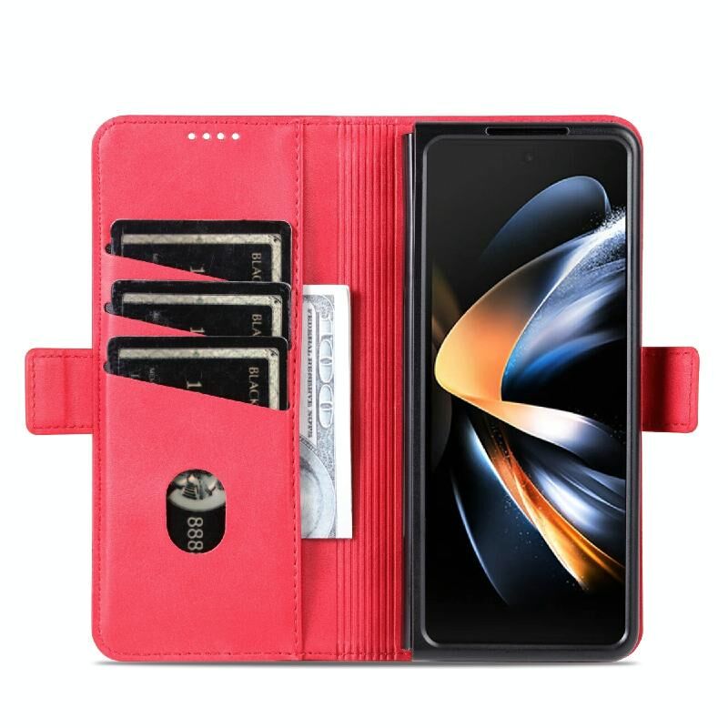 Για Samsung Galaxy Z Fold4 AZNS Μαγνητικό μοσχάρι υφή οριζόντια Flip δέρμα υπόθεση τηλεφώνου (κόκκινο) (Κόκκινο)