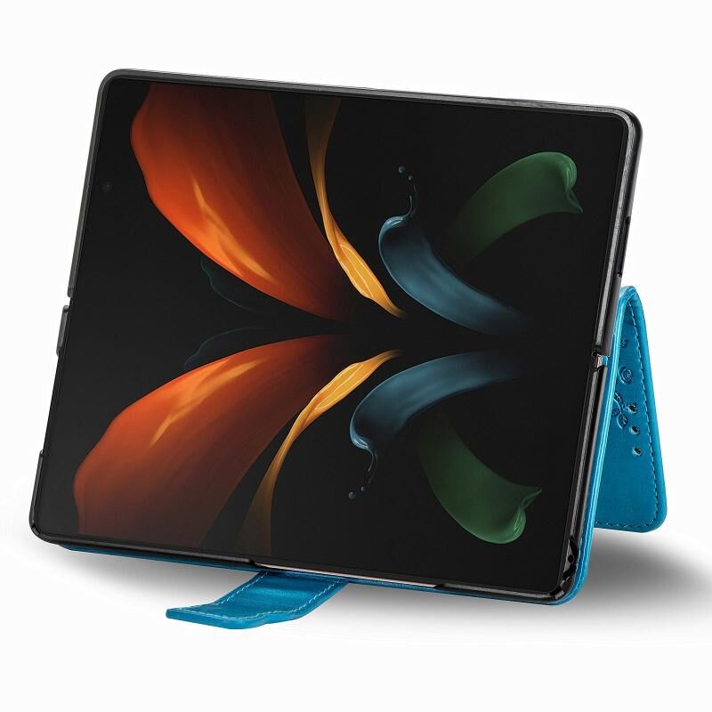 Θήκη τηλεφώνου Samsung Galaxy Z Fold4, δερμάτινη, οριζόντια, με ανάγλυφο σχέδιο πεταλούδας και λουλουδιών (Μαύρο)