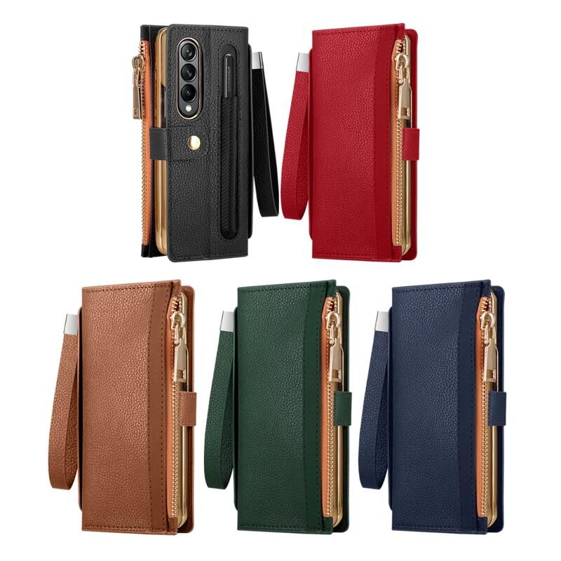 Για Samsung Galaxy Z Fold4 Celebrity Series RFID αντικλεπτική θήκη δερμάτινου τηλεφώνου με υποδοχή για στυλό (πράσινο)