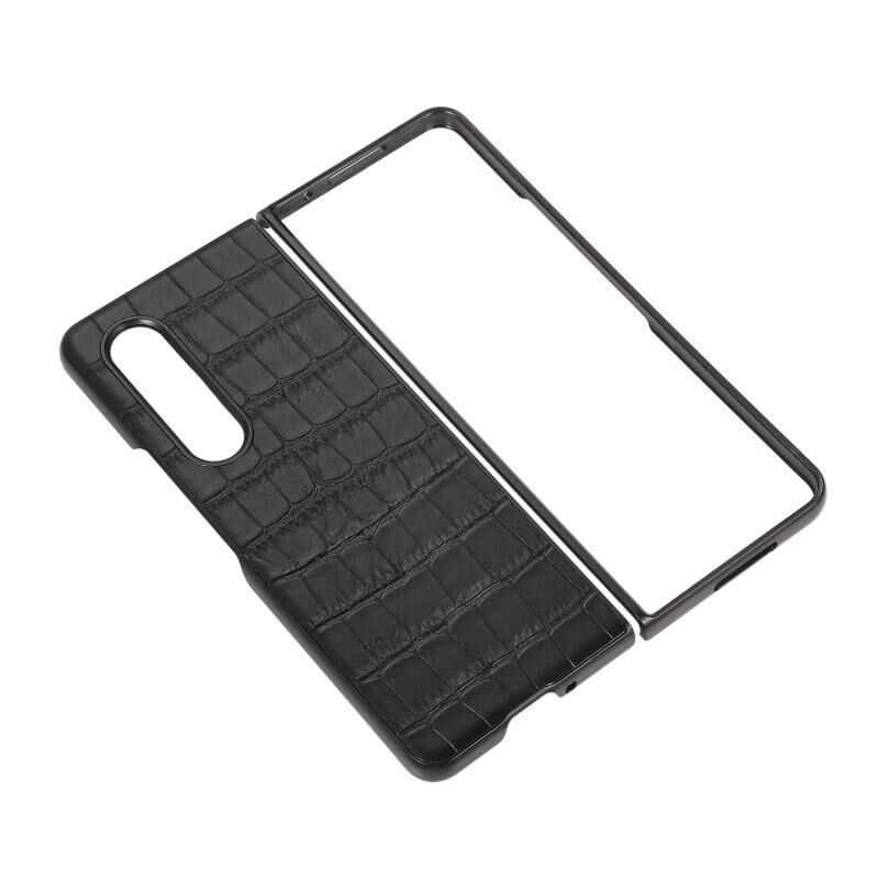 Θήκη τηλεφώνου από γνήσιο δέρμα με υφή κροκόδειλου για Samsung Galaxy Z Fold4 (Μαύρο)