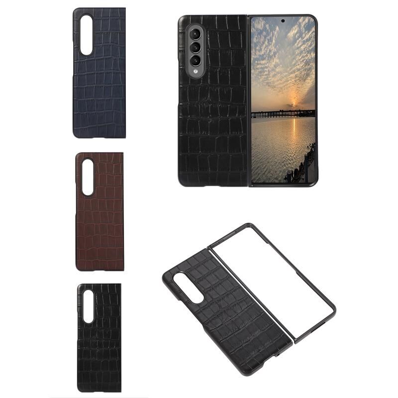 Θήκη τηλεφώνου από γνήσιο δέρμα με υφή κροκόδειλου για Samsung Galaxy Z Fold4 (Μαύρο)