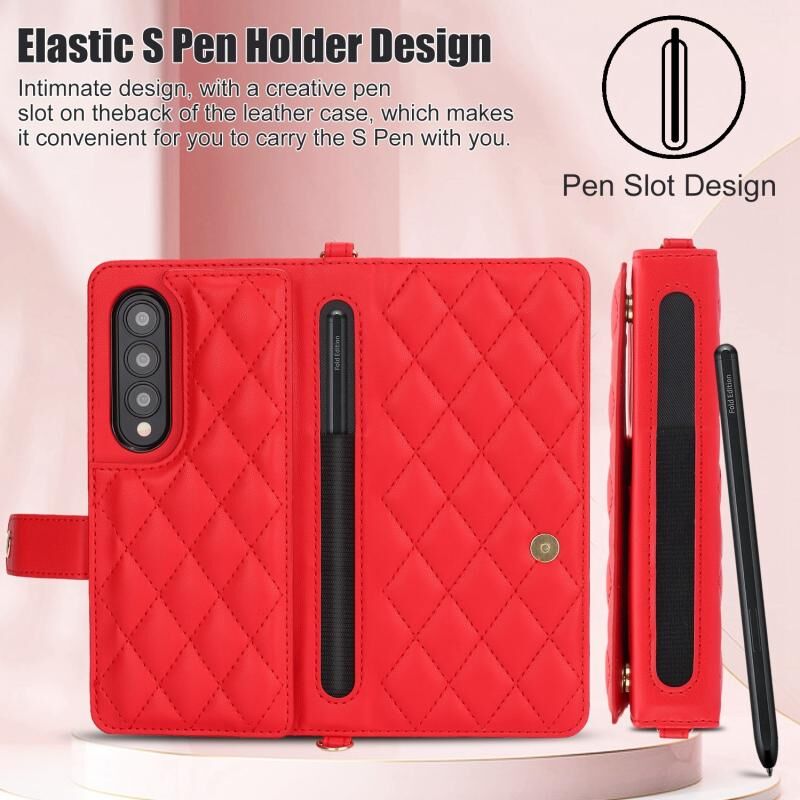 Για Samsung Galaxy Z Fold4 Crossbody πολυλειτουργική θήκη τηλεφώνου από δέρμα (κόκκινο)