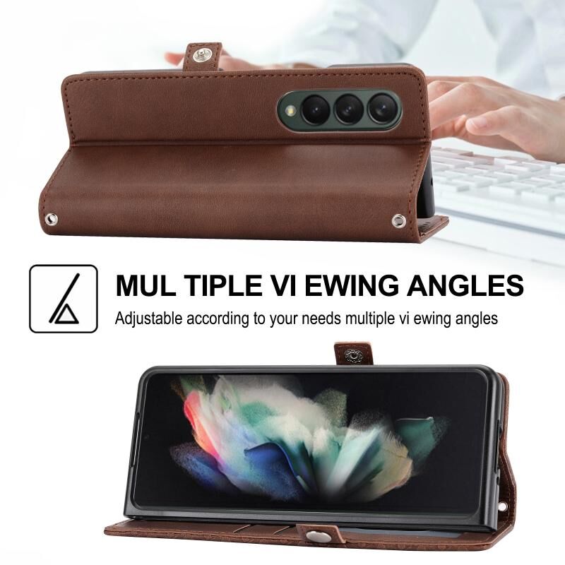 Για Samsung Galaxy Z Fold4 Cubic Grid Calf Texture δέρμα υπόθεση τηλεφώνου (καφέ)