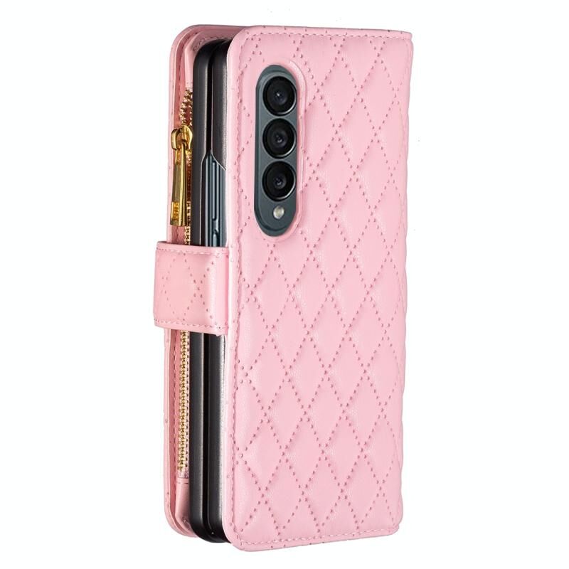 Για Samsung Galaxy Z Fold4 Diamond Lattice φερμουάρ πορτοφόλι δέρμα Flip υπόθεση τηλεφώνου (ροζ)