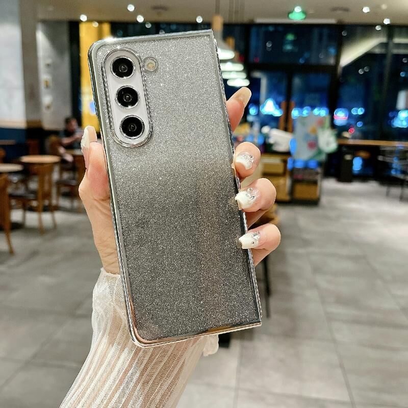 Για το Samsung Galaxy Z Fold4 Electroplating Frame + Glitter Paper Full Coverage Phone Case (Μαύρο)