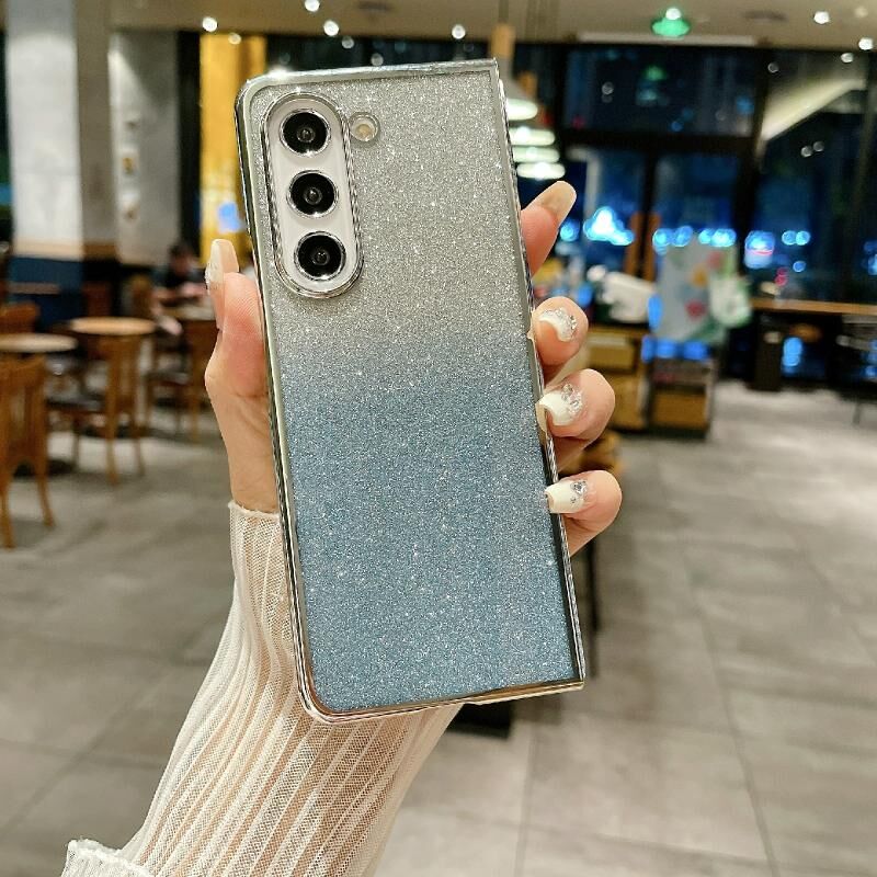 Για το Samsung Galaxy Z Fold4 Electroplating Frame + Glitter Paper Full Coverage Phone Case (μπλε)