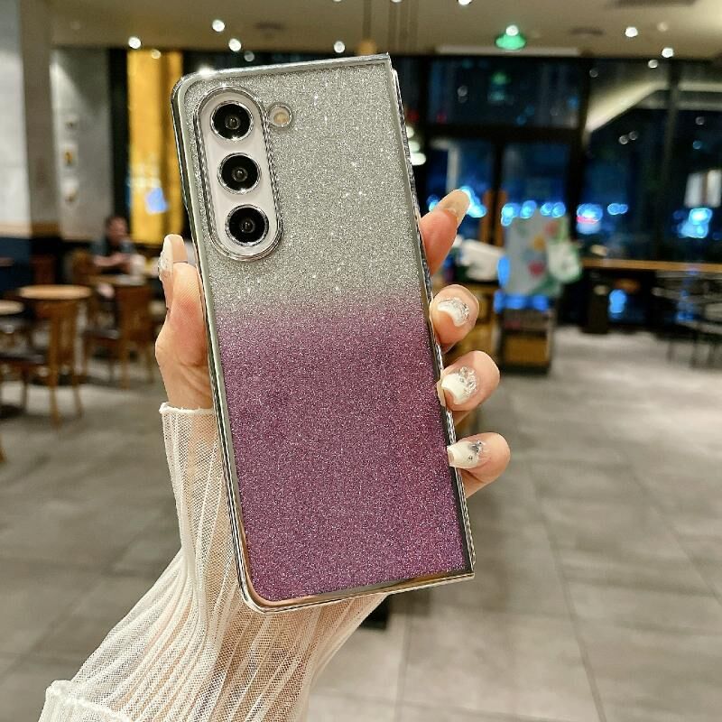 Για το Samsung Galaxy Z Fold4 Electroplating Frame + Glitter Paper Full Coverage Phone Case (μωβ)