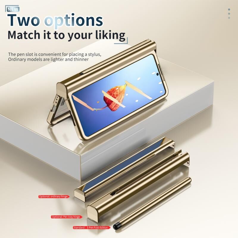 Για το Samsung Galaxy Z Fold4 Full Body Ολοκληρωμένη υπόθεση τηλεφώνου με μεντεσέδες ηλεκτρολυτικής επίστρωσης με υποδοχή για στυλό (χρυσό)