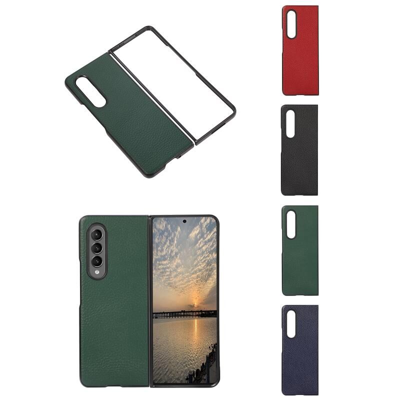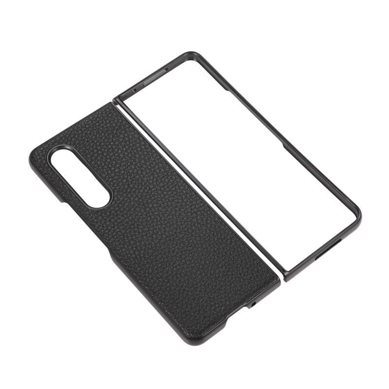 Θήκη τηλεφώνου από γνήσιο δέρμα Lychee για Samsung Galaxy Z Fold4 (Μαύρο)