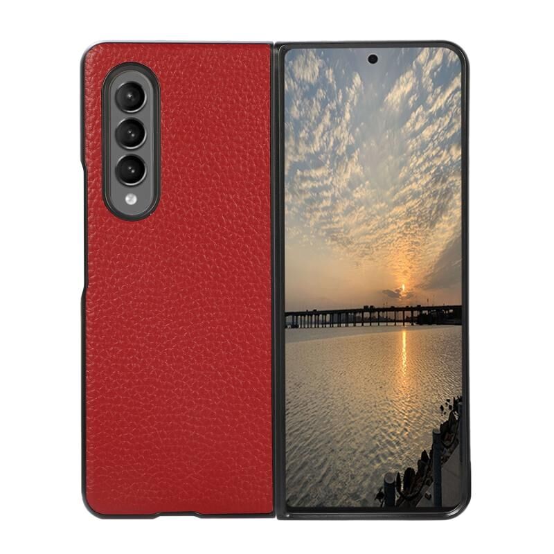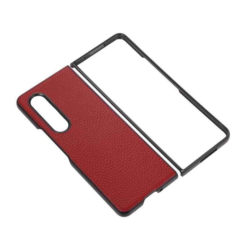 Θήκη τηλεφώνου από γνήσιο δέρμα Lychee για Samsung Galaxy Z Fold4 (Μαύρο)