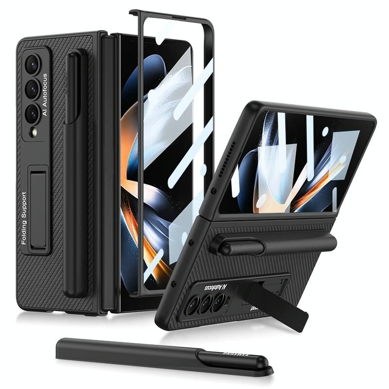 Για Samsung Galaxy Z Fold4 GKK Ultra-thin Shockproof δέρμα προστατευτική θήκη με θήκη & υποδοχές στυλό (Cross Texture) (GKK)