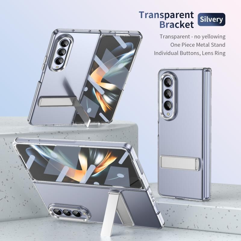 For Samsung Galaxy Z Fold4 Ice-Cold Holder PC Hybrid TPU Phone Case(Silver)