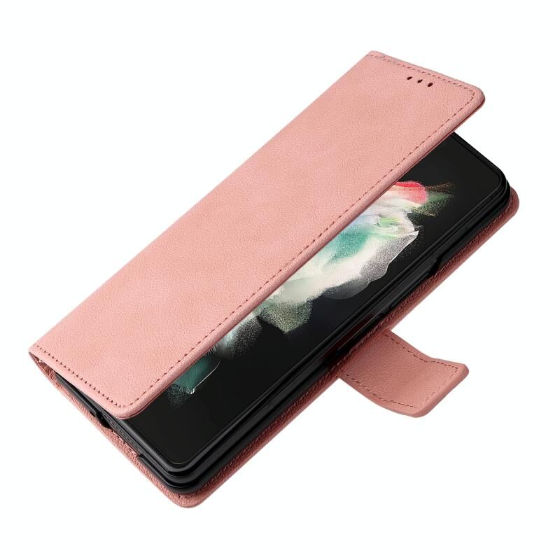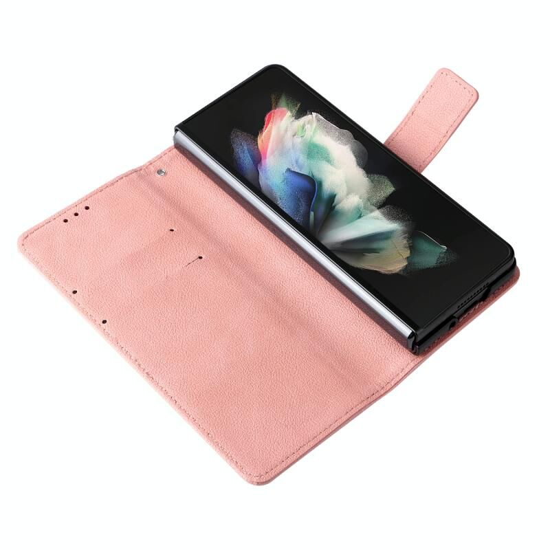 Για Samsung Galaxy Z Fold4 Lambskin Flip δέρμα θήκη τηλεφώνου με υποδοχή για στυλό (ροζ)