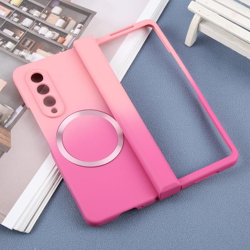 For Samsung Galaxy Z Fold4 Liquid PC Gradient MagSafe Phone Case(Pink Red)