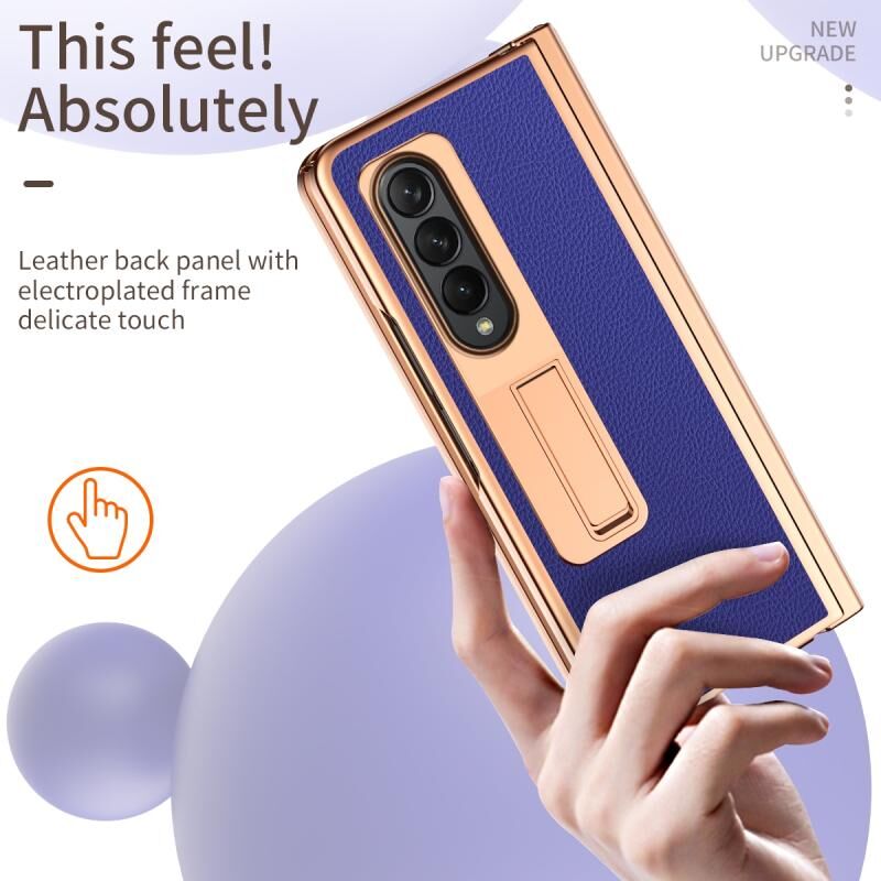 Για το Samsung Galaxy Z Fold4 Litchi Υφή δέρμα αρθρωτό Electroplated υπόθεση τηλεφώνου με στυλό (μπλε)