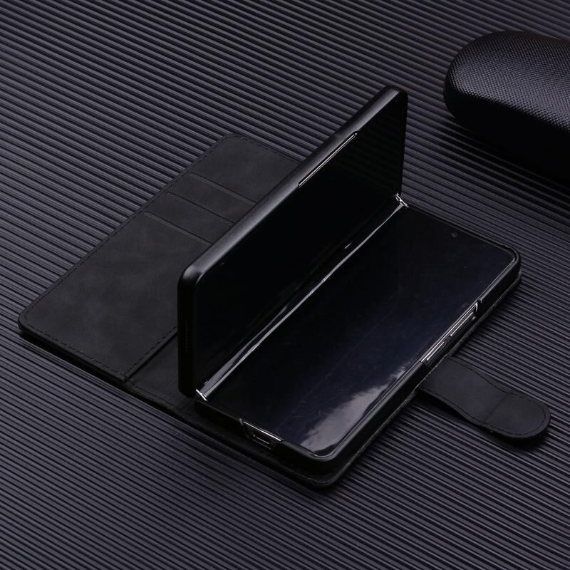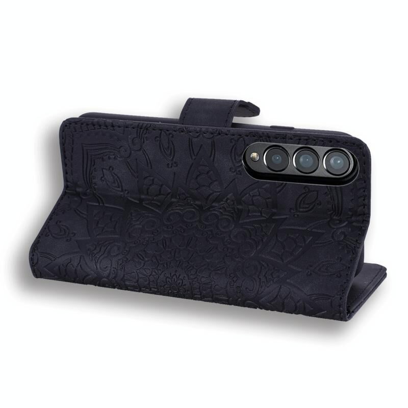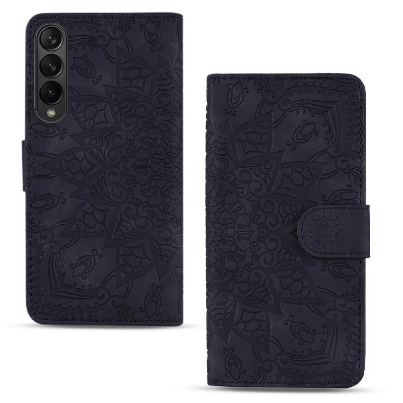 Για το Samsung Galaxy Z Fold4 Mandala ανάγλυφο Dual-Fold Calf δέρμα τηλέφωνο υπόθεση (μαύρο)