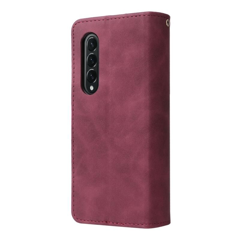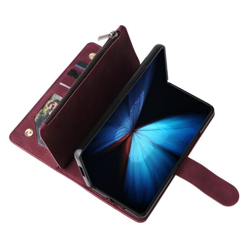 Για Samsung Galaxy Z Fold4 πολυλειτουργικό παγωμένο φερμουάρ πορτοφόλι δερμάτινη θήκη τηλεφώνου (κόκκινο κρασί)