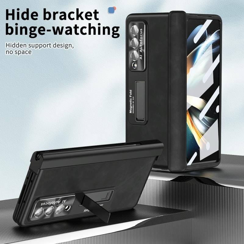 Για Samsung Galaxy Z Fold4 Napa μοτίβο All-inclusive μαγνητική θήκη τηλεφώνου (Μαύρο)