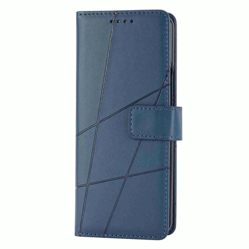 For Samsung Galaxy Z Fold4 PU Genuine Leather Texture Embossed Line Phone Case(Blue)