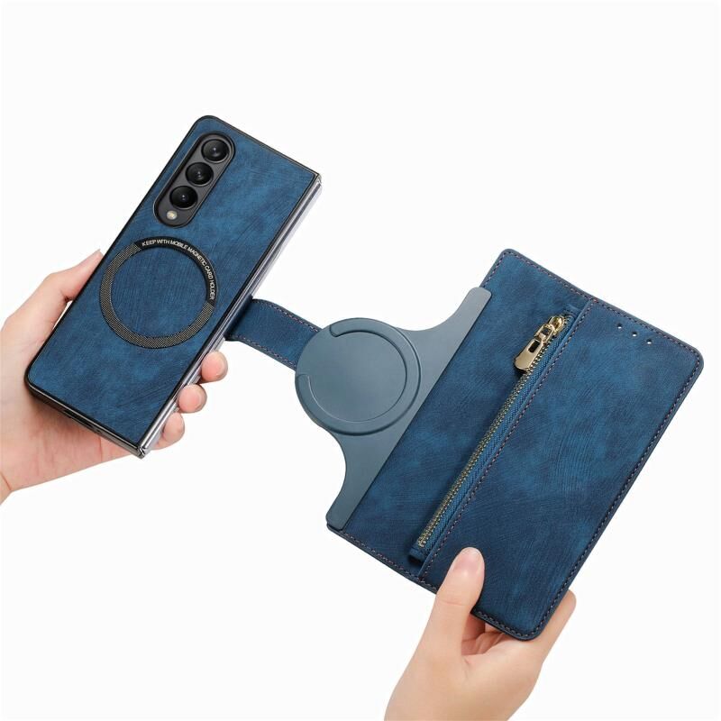 Θήκη τηλεφώνου Samsung Galaxy Z Fold4 Retro MagSafe Μαγνητικό Πορτοφόλι με Φερμουάρ από Δέρμα (Πράσινο)