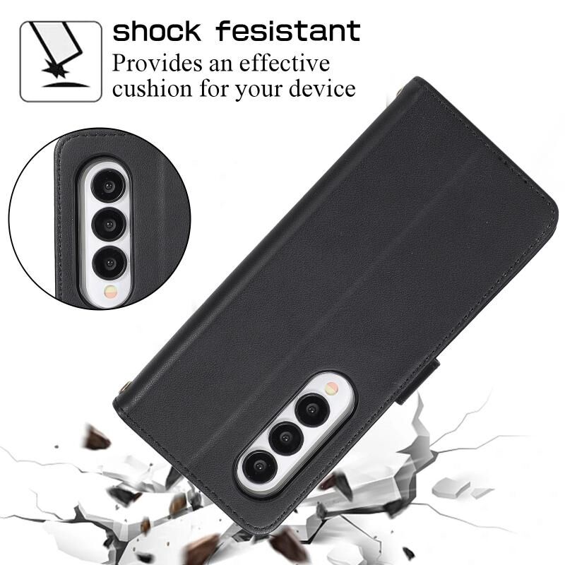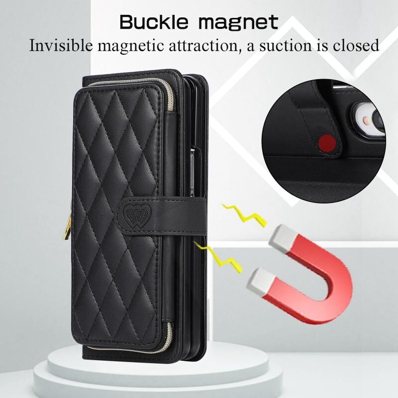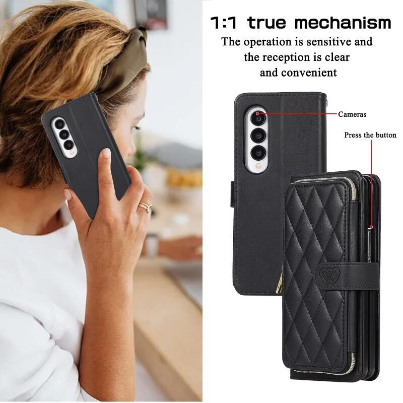 Για Samsung Galaxy Z Fold4 Rhombic πλήρη φερμουάρ πορτοφόλι δερμάτινη θήκη τηλεφώνου (μαύρο)