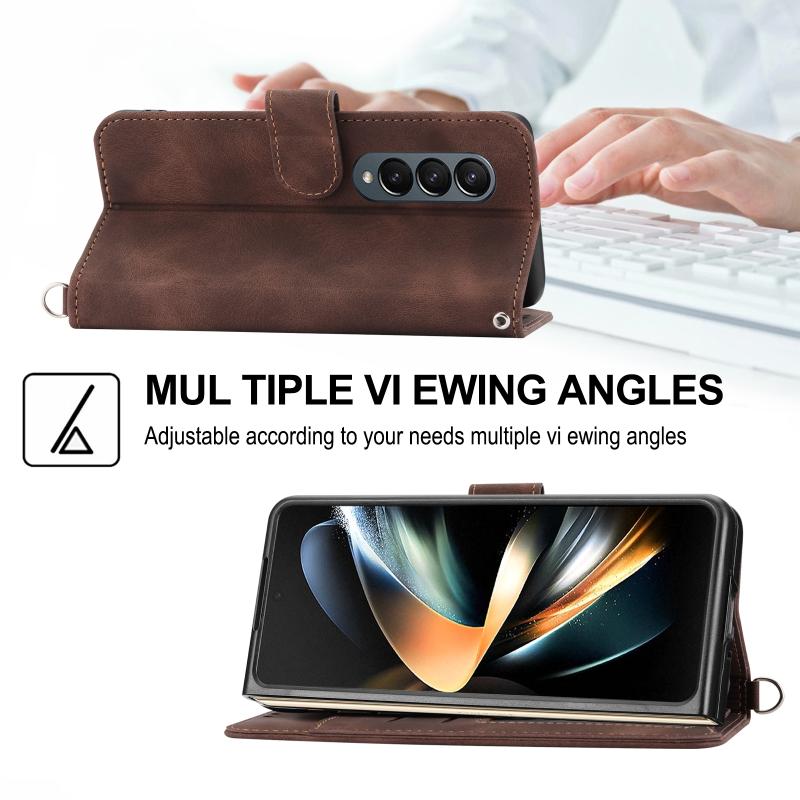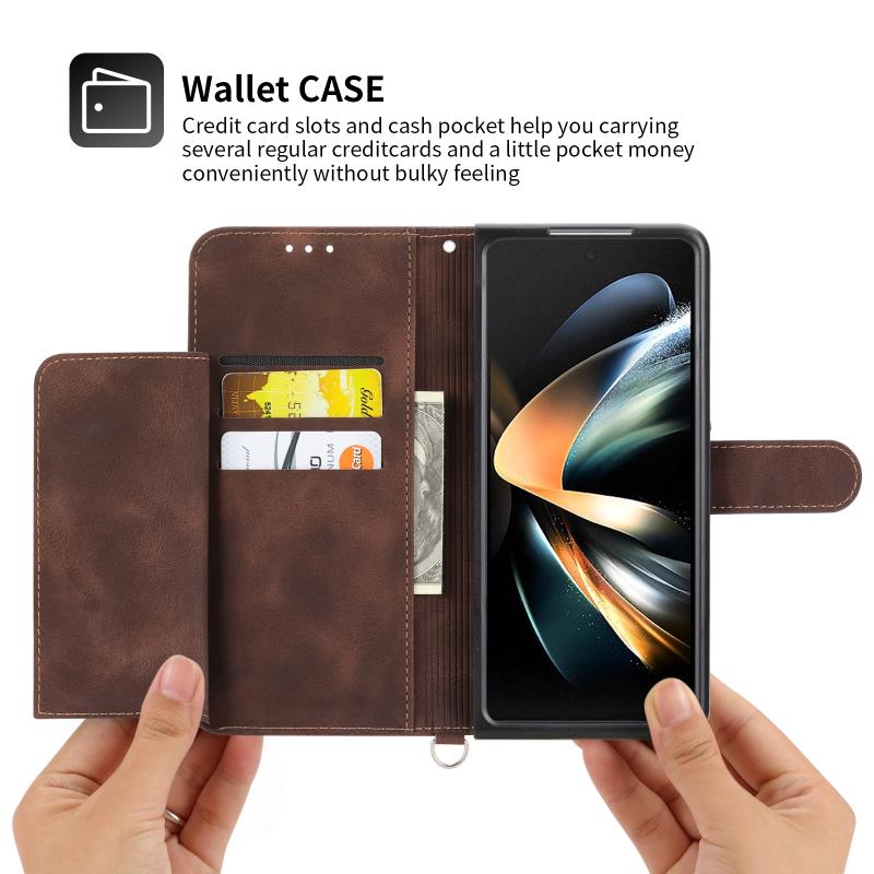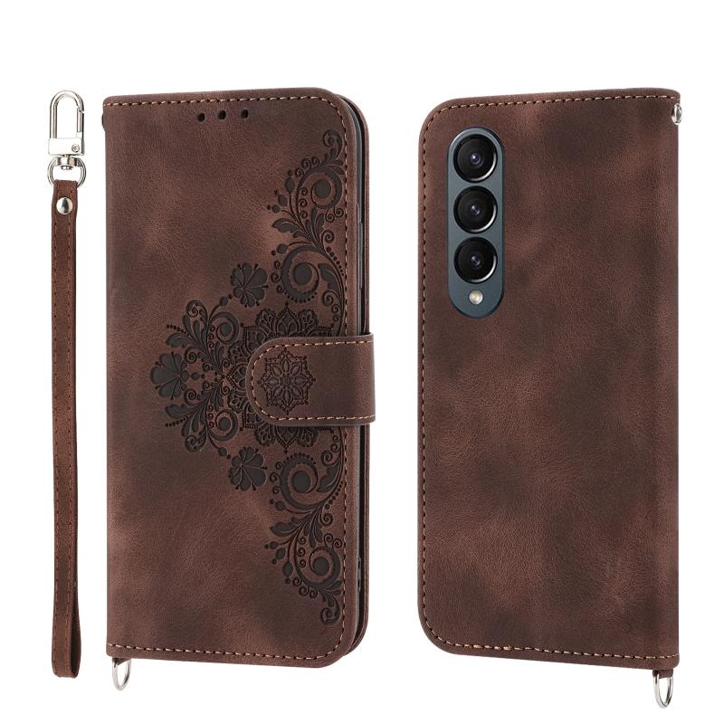 Θήκη τηλεφώνου Samsung Galaxy Z Fold4 με δερμάτινο πορτοφόλι, ανάγλυφα λουλούδια με αίσθηση δέρματος (Καφέ)