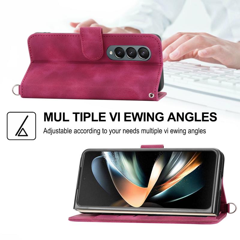 Θήκη τηλεφώνου Samsung Galaxy Z Fold4 με δερμάτινο πορτοφόλι, ανάγλυφα λουλούδια με αίσθηση δέρματος (Καφέ)