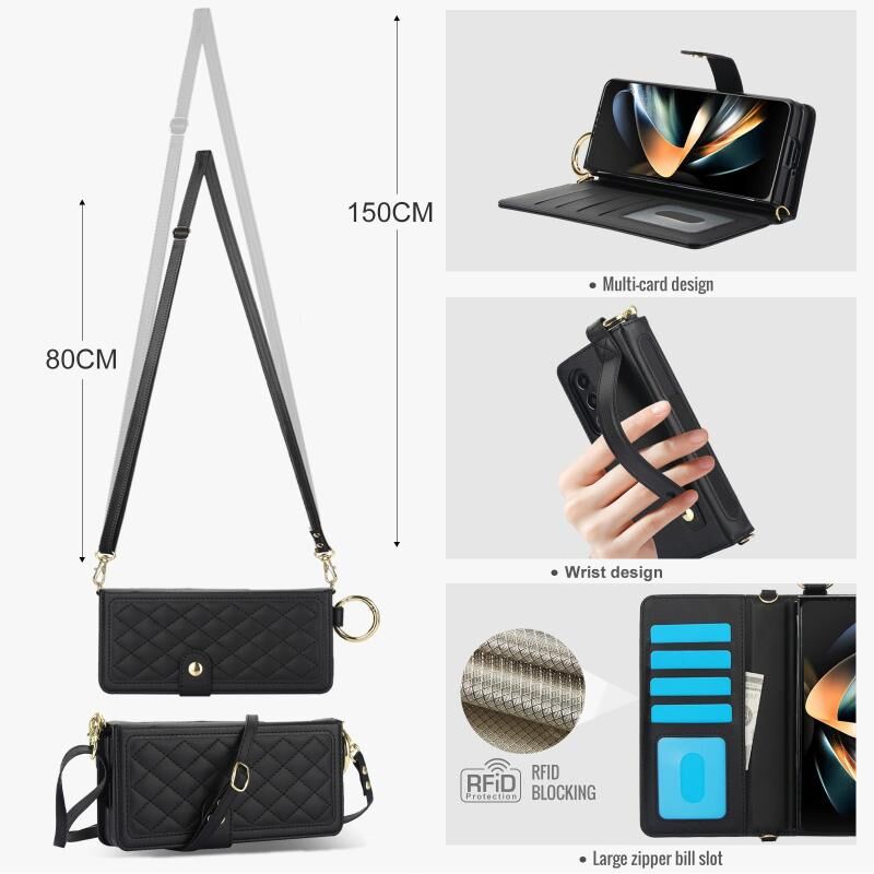 Για Samsung Galaxy Z Fold4 Splicing Rhombic Υφή υπόθεση τηλεφώνου με μακρύ & σύντομο κορδόνι, δεν περιλαμβάνεται στυλό (μαύρο)