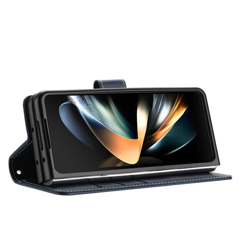 Για Samsung Galaxy Z Fold4 ραφή μοσχάρι υφή πόρπη πτυσσόμενο δέρμα τηλέφωνο υπόθεση (μπλε)