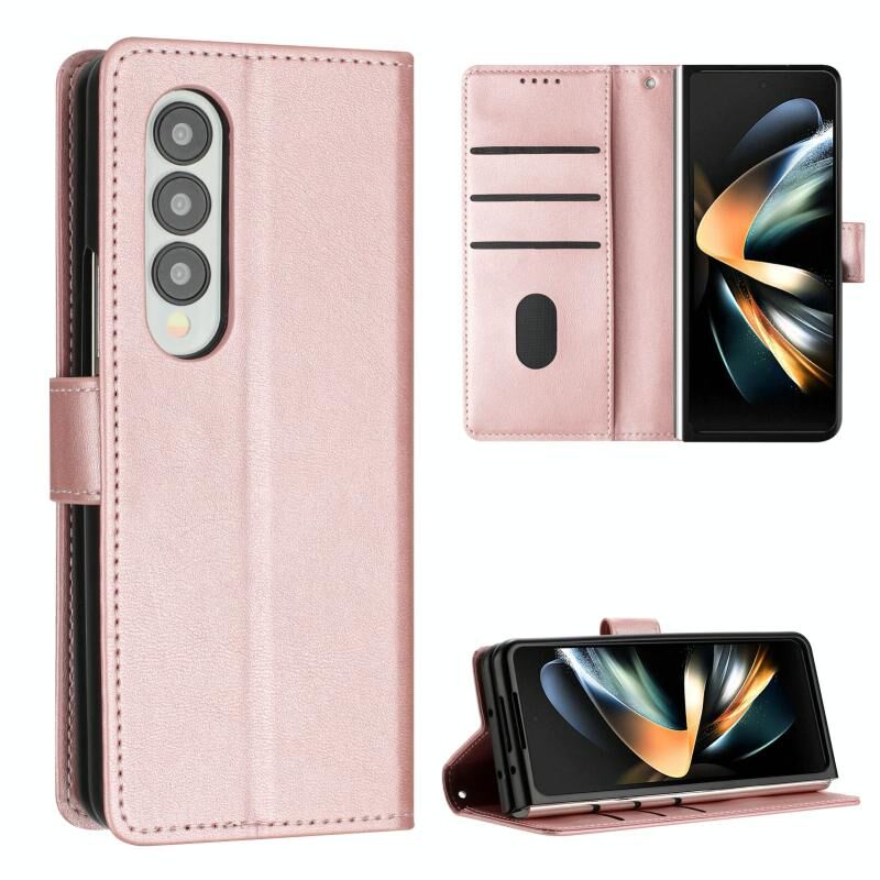 Για το Samsung Galaxy Z Fold4 ραφή μοσχάρι υφή πόρπη πτυσσόμενο δέρμα τηλέφωνο υπόθεση (Rose Gold)