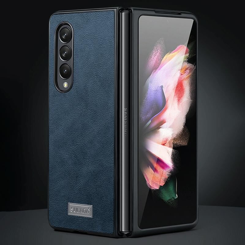 Για Samsung Galaxy Z Fold4 SULADA Αδιάβροχη θήκη τηλεφώνου TPU + χειροποίητο δέρμα (μπλε) (SULADA)