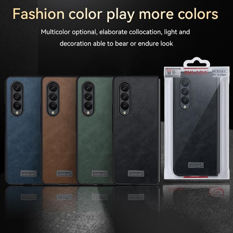 For Samsung Galaxy Z Fold4 SULADA Shockproof TPU + Handmade Leather Protective Case(Green) (SULADA)
