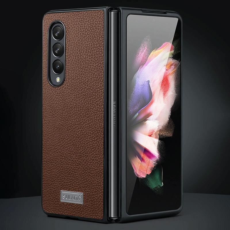 Για το Samsung Galaxy Z Fold4 SULADA Αδιάβροχο TPU + Litchi Υφή δέρμα υπόθεση τηλεφώνου (καφέ) (SULADA)