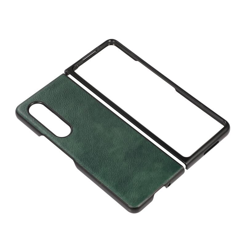 Θήκη τηλεφώνου Samsung Galaxy Z Fold4 Διχρωμης υφής Litchi από PU (Μαύρο)
