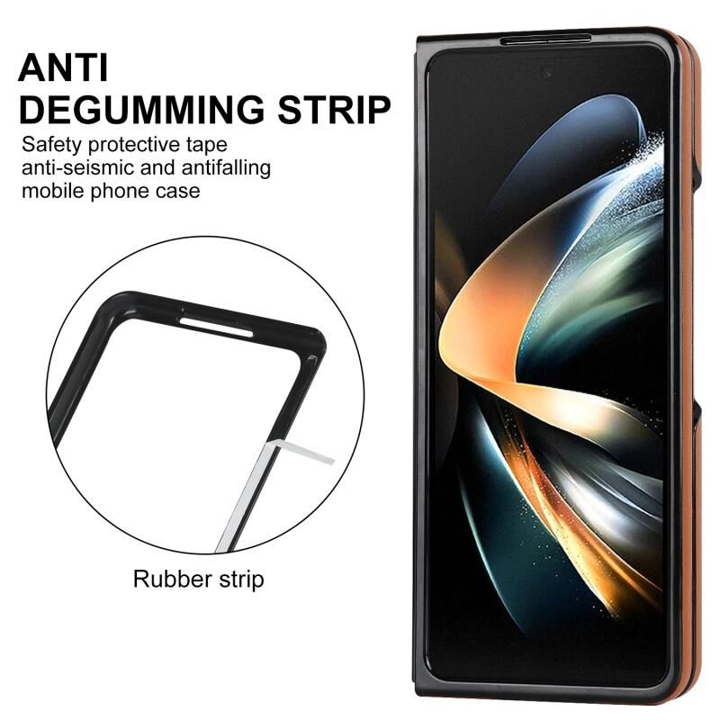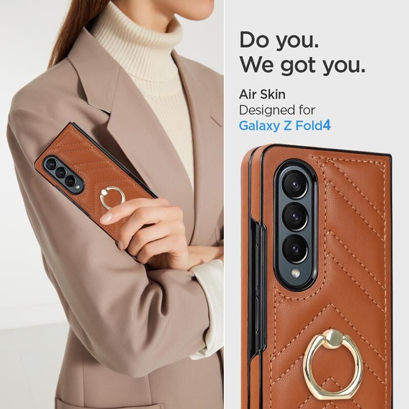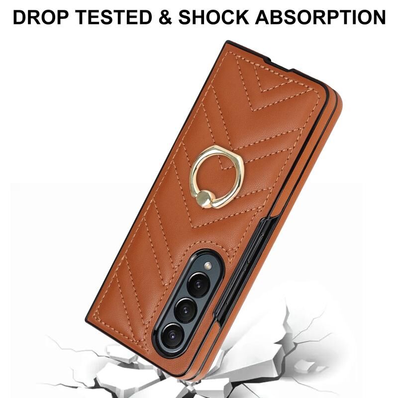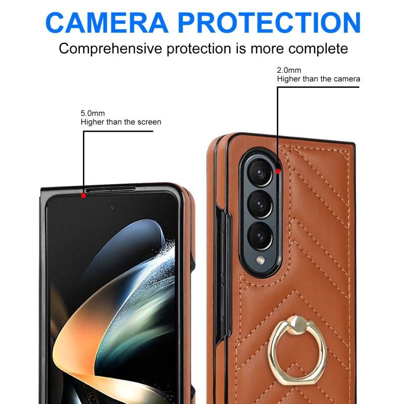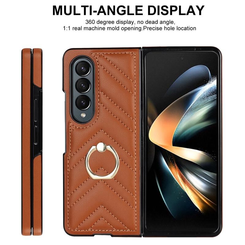 Για το Samsung Galaxy Z Fold4 V-σχήμα πτυσσόμενη θήκη τηλεφώνου με περιστρεφόμενο δακτύλιο (καφέ)