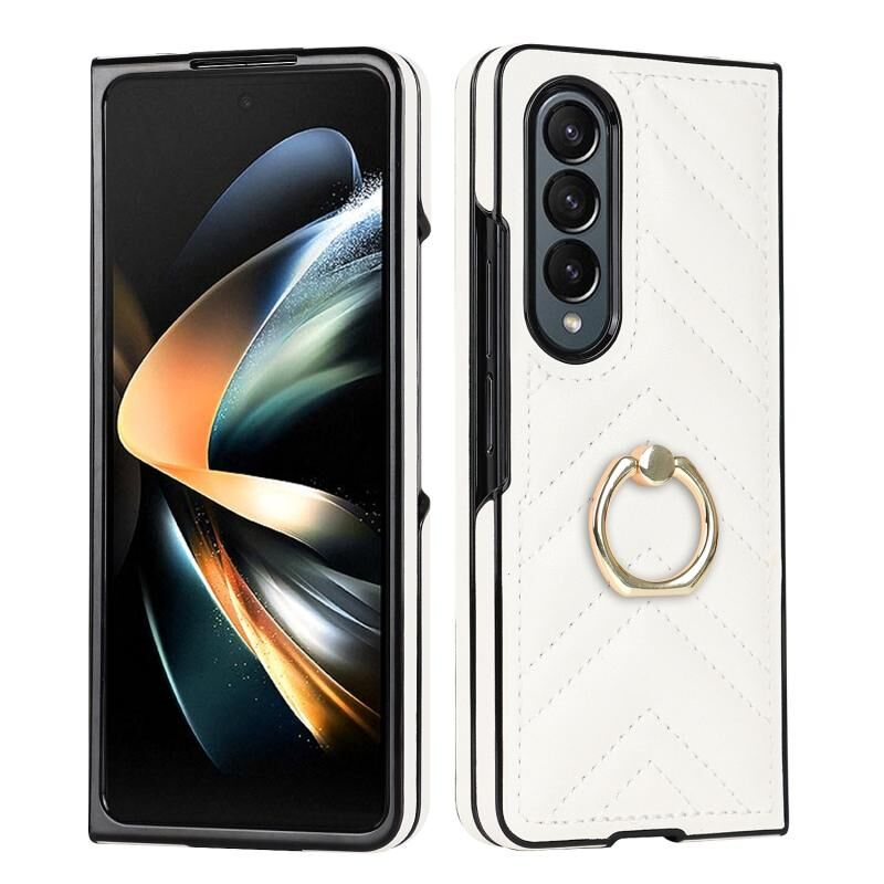 Για Samsung Galaxy Z Fold4 V-shaped Folding Phone Case με περιστρεφόμενο δακτύλιο (Λευκό)