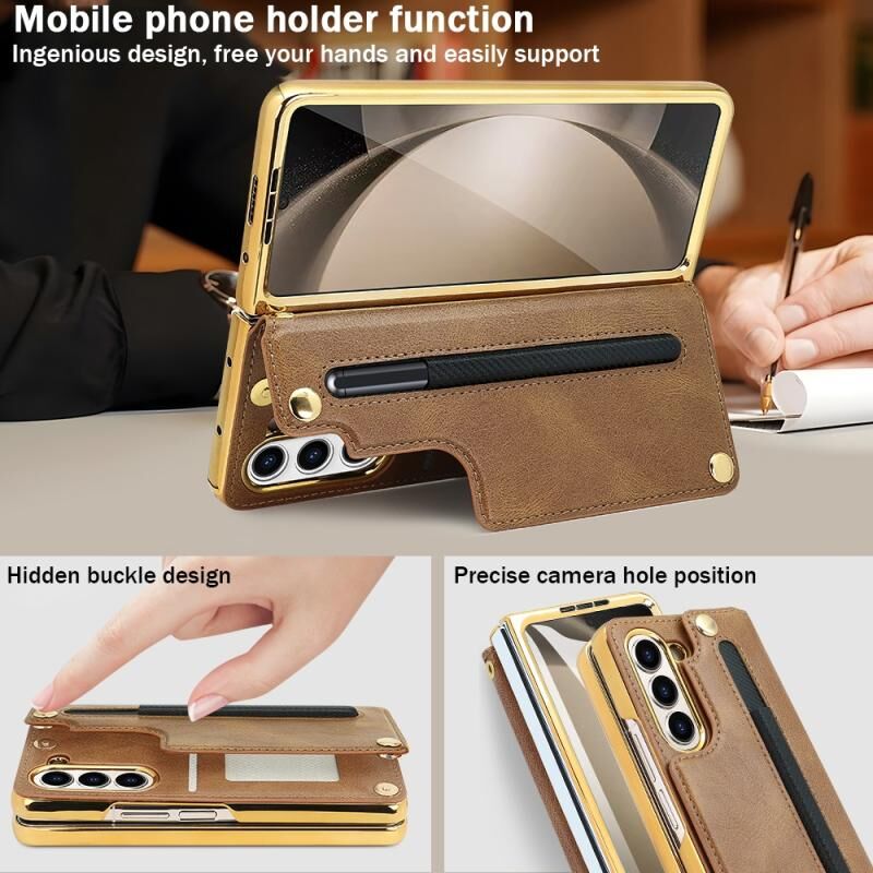 For Samsung Galaxy Z Fold4 VIETAO Film Integrated Folding Holder Flip PU Phone Case(Brown) (VIETAO)