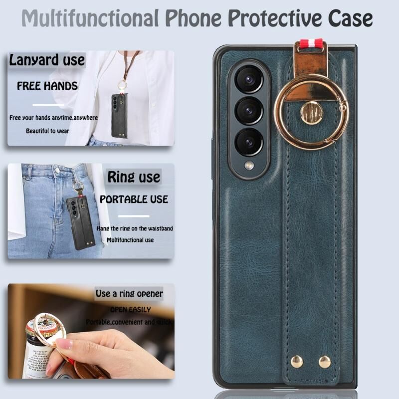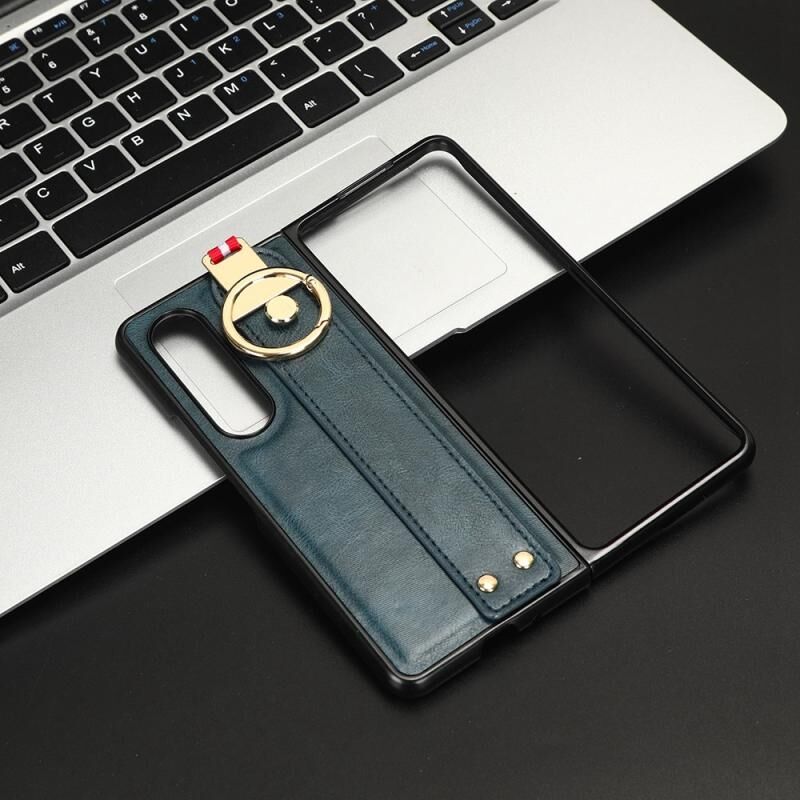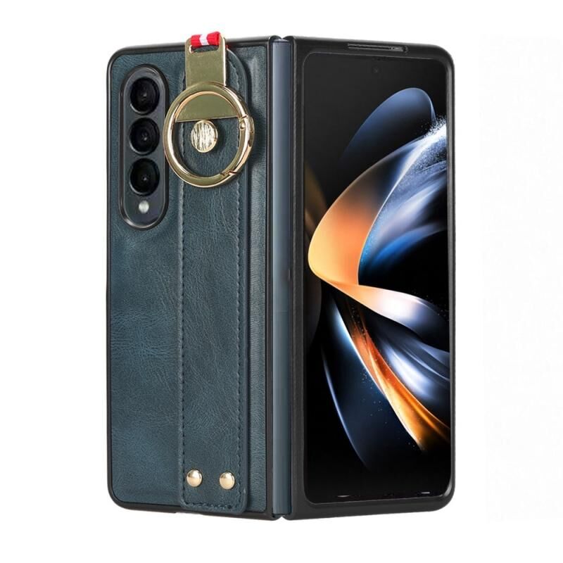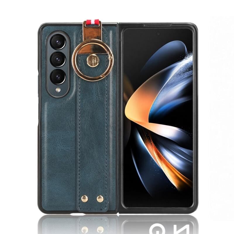 Για Samsung Galaxy Z Fold4 Wristband δέρμα πίσω θήκη τηλεφώνου (μπλε)