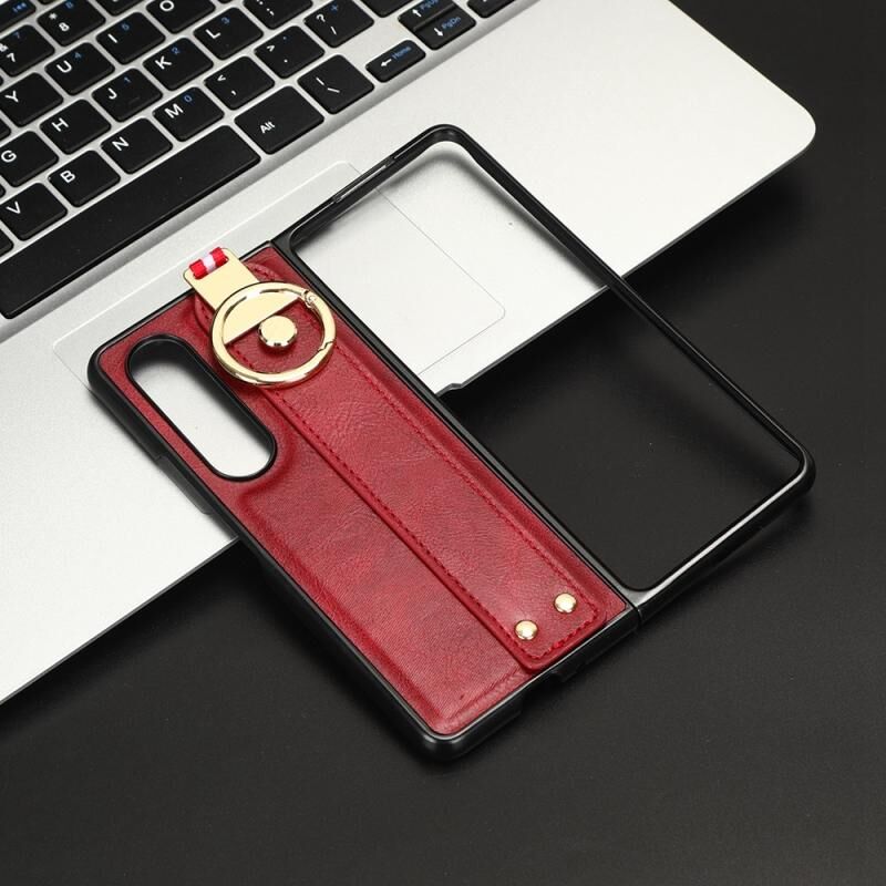 Για Samsung Galaxy Z Fold4 Wristband δέρμα πίσω θήκη τηλεφώνου (κόκκινο)