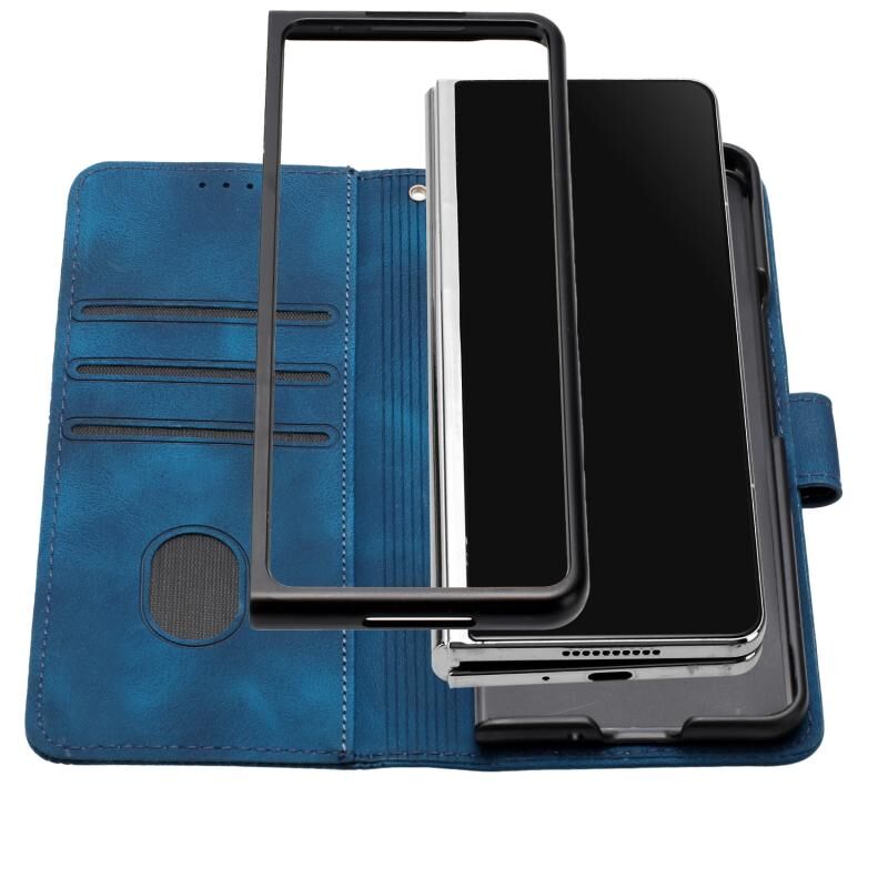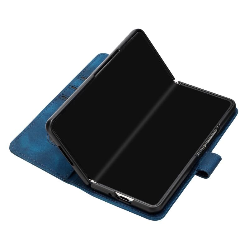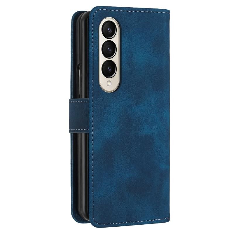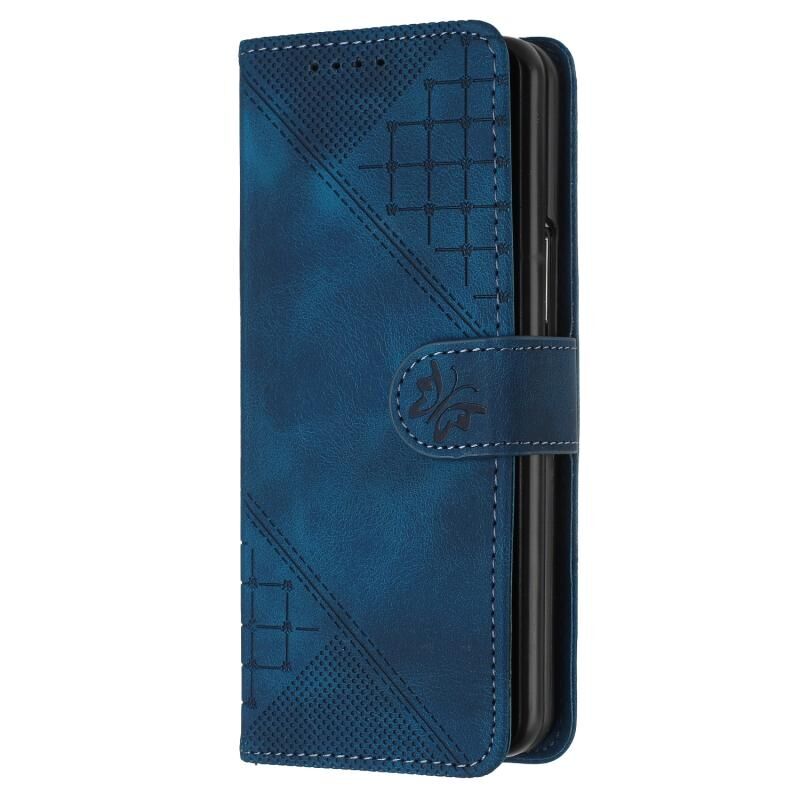 For Samsung Galaxy Z Fold4 YX0080 Grid Butterfly Embossed Pattern Flip Leather Phone Case with Lanyard(Dark Blue)