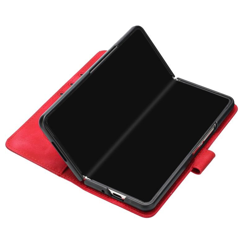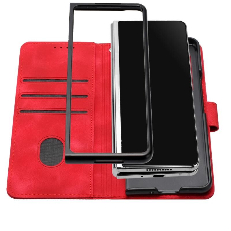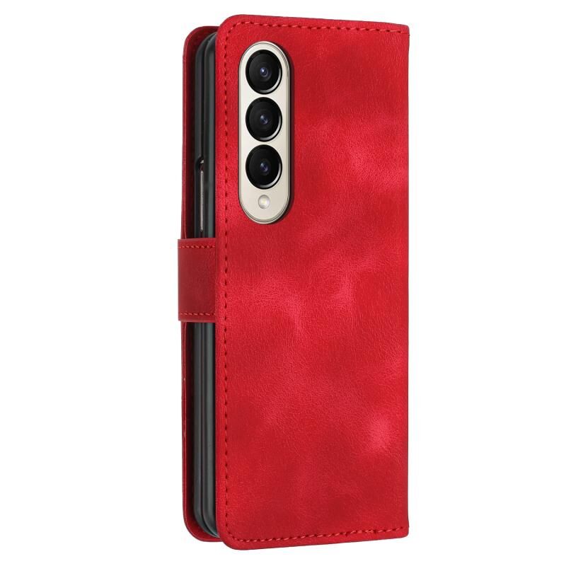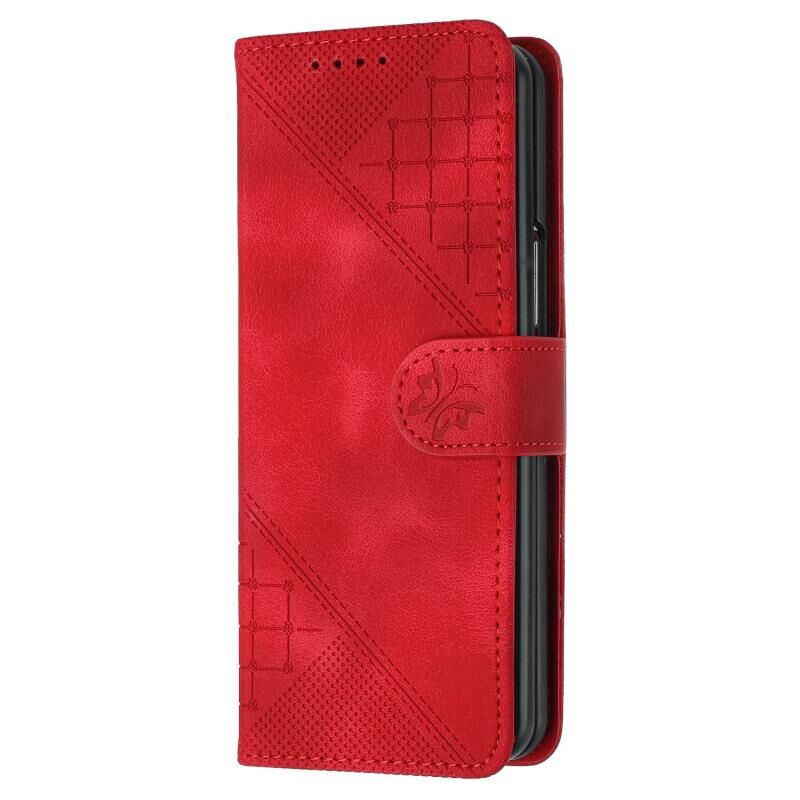 For Samsung Galaxy Z Fold4 YX0080 Grid Butterfly Embossed Pattern Flip Leather Phone Case with Lanyard(Red)