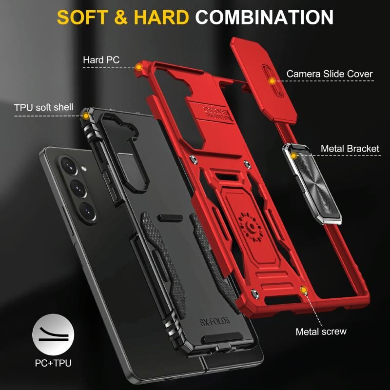 Για το Samsung Galaxy Z Fold5 5G θωράκιση PC + TPU κάμερα ασπίδα τηλέφωνο υπόθεση (κόκκινο)
