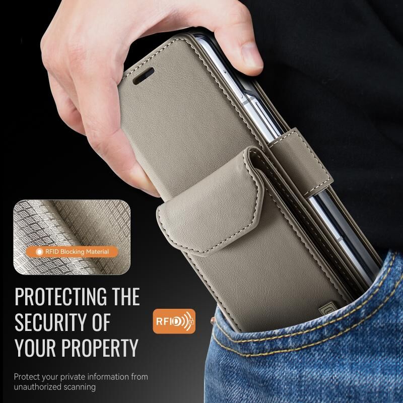 Θήκη κινητού τηλεφώνου AutSpace A23 για Samsung Galaxy Z Fold5 5G, κάρτας οργάνωσης, μαγνητική, RFID, από PU δέρμα (Μπλε) (AutSpace)