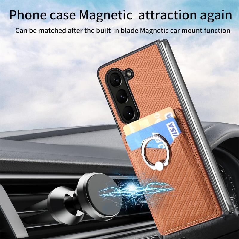 Για Samsung Galaxy Z Fold5 5G άνθρακα Fiber κάρτα πορτοφόλι δαχτυλίδι κάτοχος θήκη τηλεφώνου (καφέ)