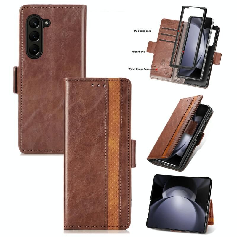 Για Samsung Galaxy Z Fold5 5G CaseNeo Splicing Διπλή μαγνητική πόρπη δερμάτινη θήκη τηλεφώνου (καφέ)