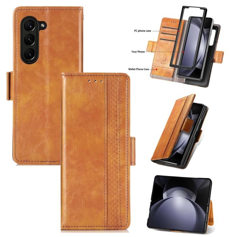 Για Samsung Galaxy Z Fold5 5G CaseNeo Splicing Διπλή μαγνητική πόρπη δερμάτινη θήκη τηλεφώνου (χακί)