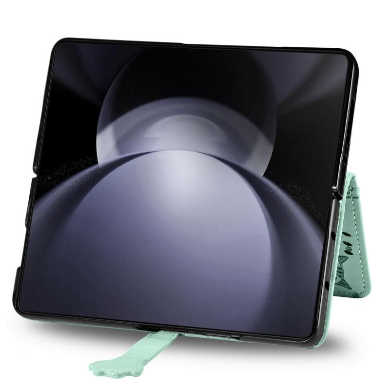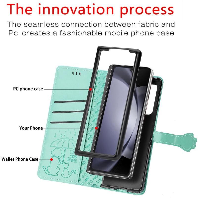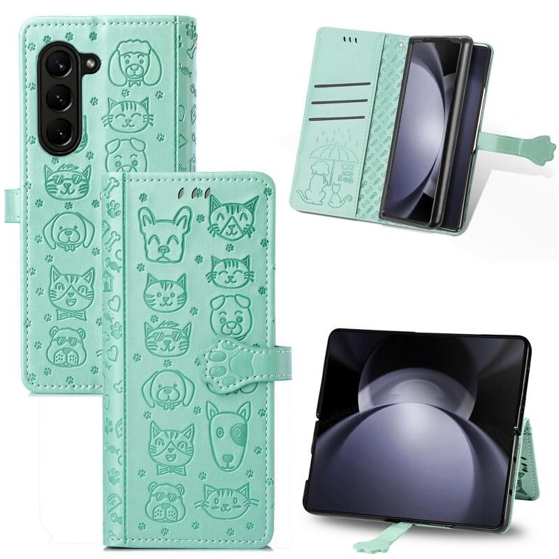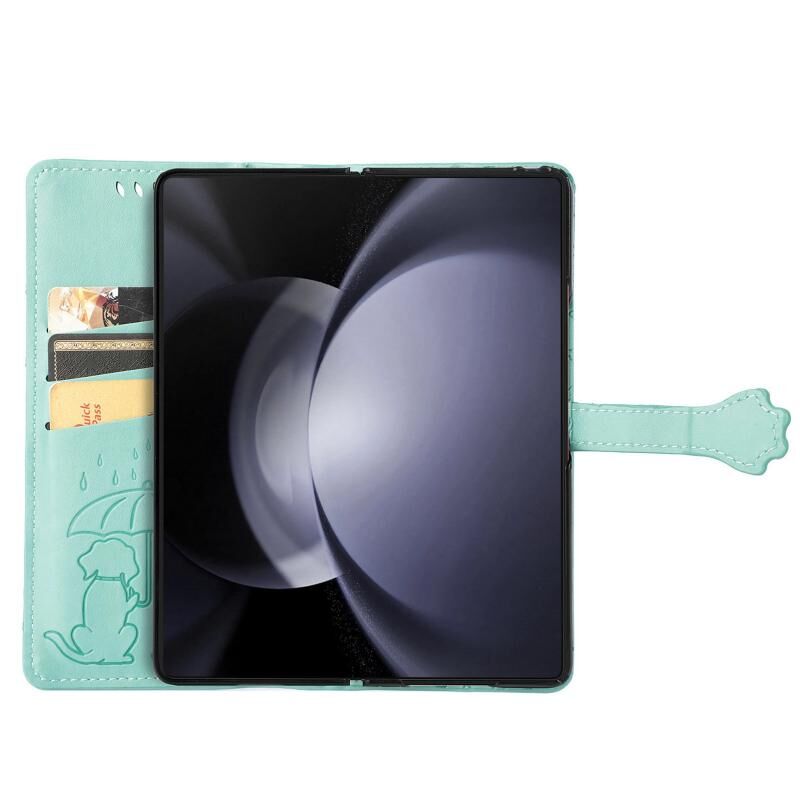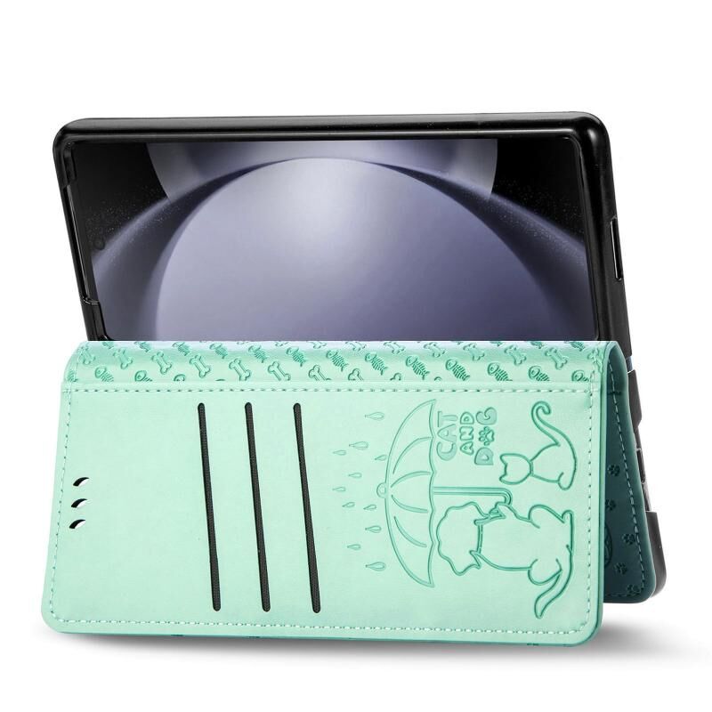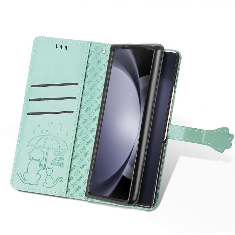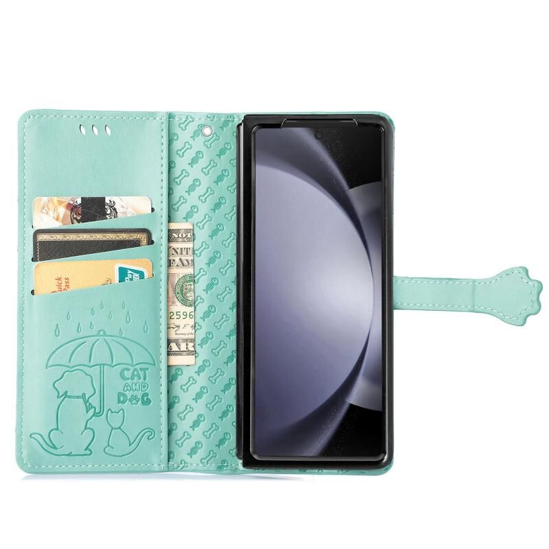 Θήκη τηλεφώνου δερμάτινη με ανάγλυφο σχέδιο γάτας και σκύλου για Samsung Galaxy Z Fold5 5G (Χρυσό ροζ)