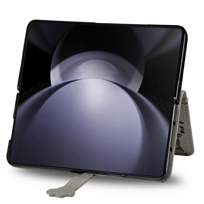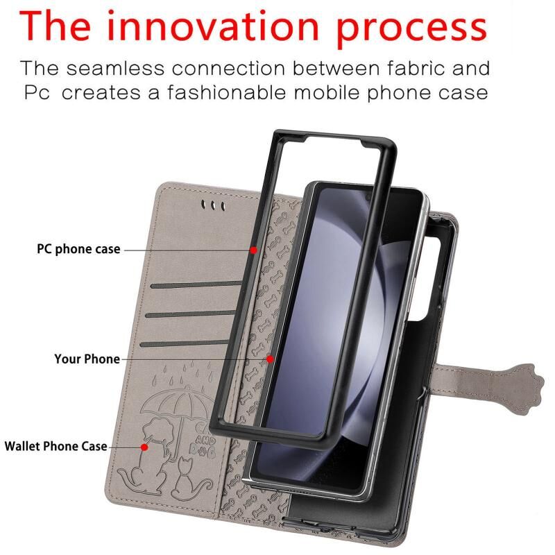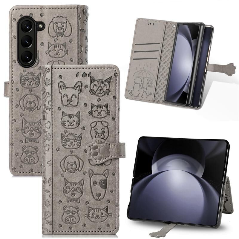 Θήκη τηλεφώνου δερμάτινη με ανάγλυφο σχέδιο γάτας και σκύλου για Samsung Galaxy Z Fold5 5G (Χρυσό ροζ)